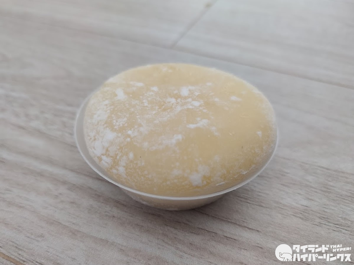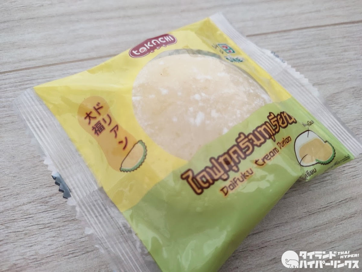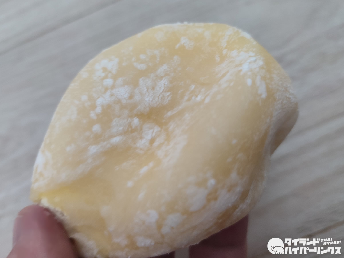 そんな中で、以前話題になった「ドリアン大福」がセブンイレブンで復活。久しぶりなので、早速購入してみました。価格は一つ25バーツなので、日本円にすると100円ちょっとです。