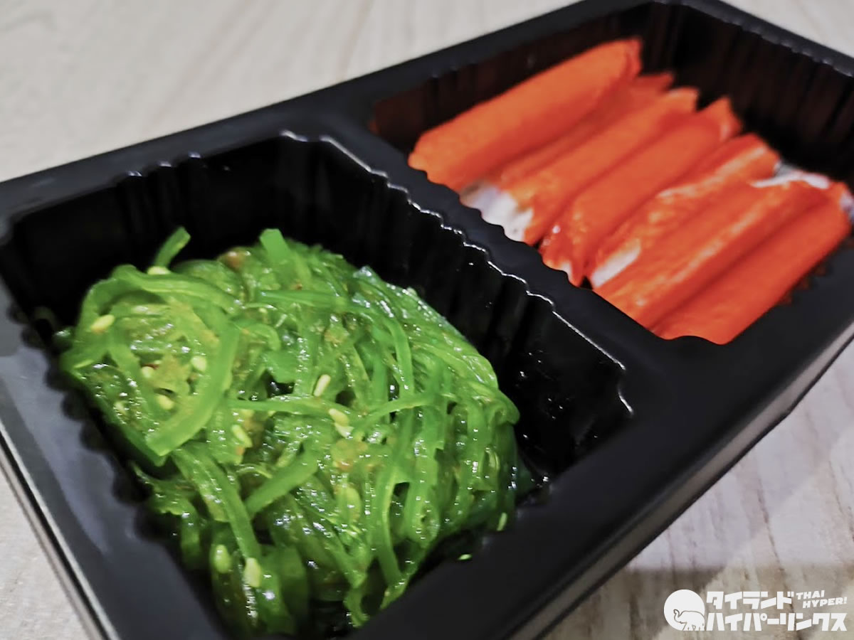 次に見つけたのがこの商品。タイ人の好きな日本食の素材・食材ランキングでは必ず上位に来るであろうカニカマと中華ワカメがセットになって売られていました!