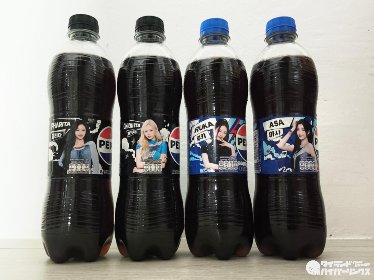 そんなBABYMONSTERがプレゼンターを務めるのがペプシ。現在、BABYMONSTERのメンバーの写真がパッケージに描かれたペプシが販売中で、コンビニで見つけたので購入してみました。ただし、ペプシ7本もいらないので、日本人とタイ人メンバーのみ4本を購入です。