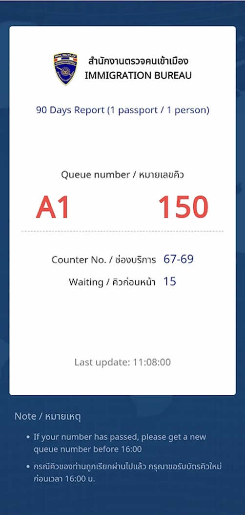 結局90日レポートの提出が終わったのが、午前11時30分頃。以前はTM30について聞かれて手間取ったこともありましたが、今回は何事もなく終了です。