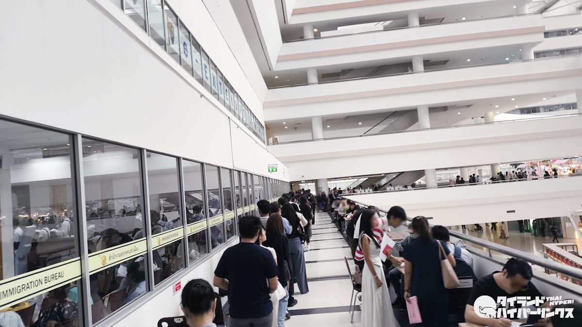 そして今回、初回90日レポートということで、チェーンワッタナー通りにあるタイ王国政府総合庁舎を訪れました。Bビルにある入国管理局に到着したのが、午前8時半頃。フォームに記入し、番号札をもらうためのに行列に並びました。