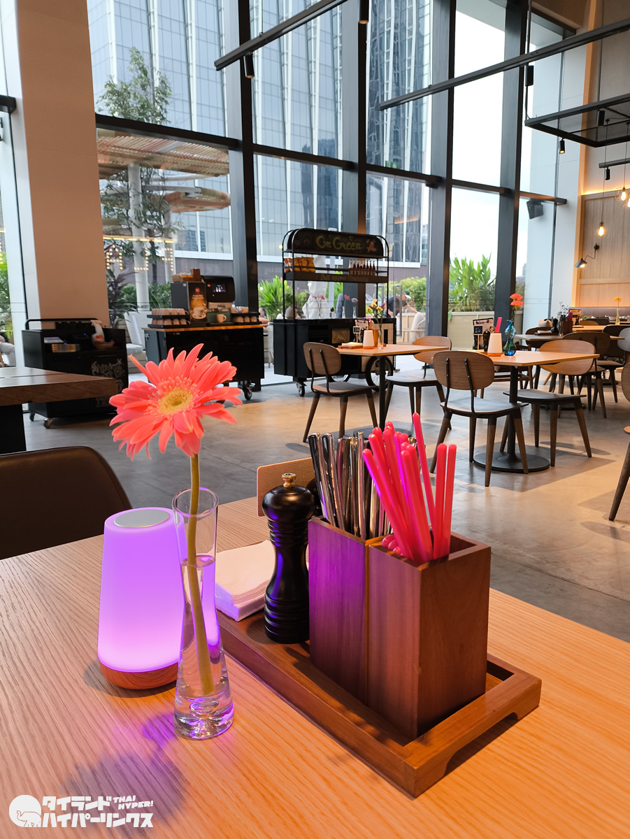 「モクシー・バンコク・ラチャプラン」のレストランでモダンなタイ料理と南国ドリンク