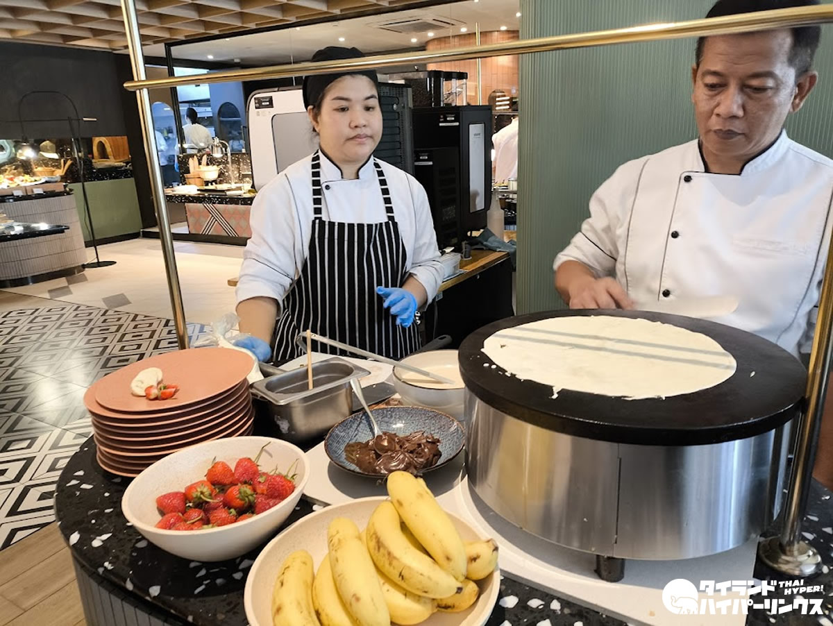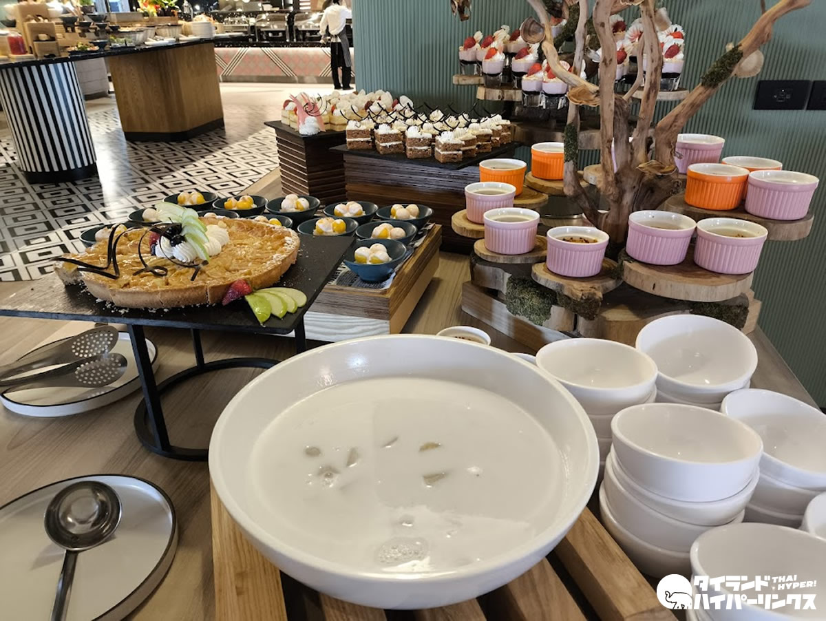 デザートには、クレープやタイ伝統スイーツも用意されており、食後の満足感もしっかりです。