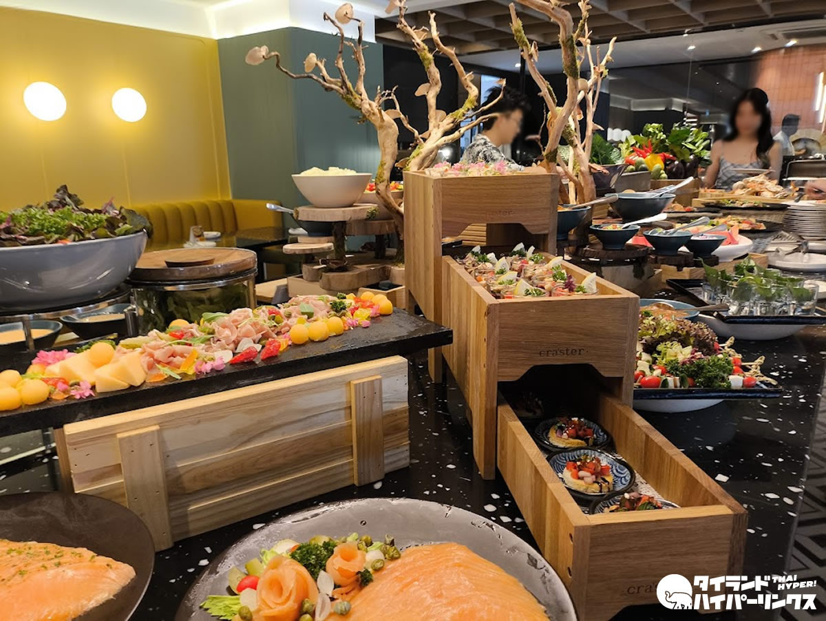 バンコク・スクンビット通り39のトライブ リビング バンコク スクンビット39(TRIBE Living Bangkok Sukhumvit 39)では、2025年3月14日より5階のレストラン「TRIBE Table」で、毎週土曜日限定のランチビュッフェが始まりました。価格は999++THB。早速オープン初日に行ってきました。