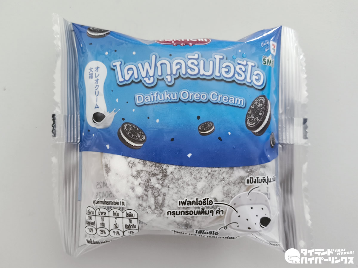 セブンイレブンでの冷蔵棚のスイーツコーナー。度々新商品が並ぶのでこの日も「もしかして・・・」と覗いてみると、期待通りのモノを発見。それが「オレオクリーム大福」でした。価格は39バーツ。