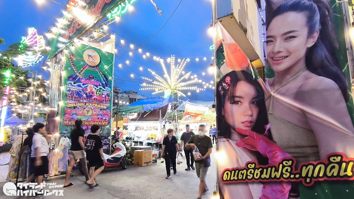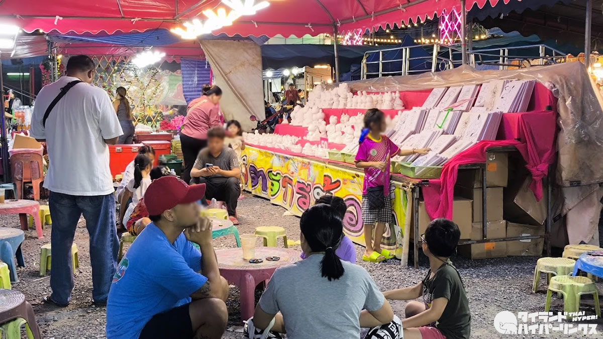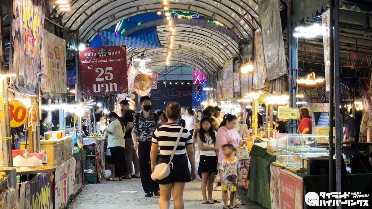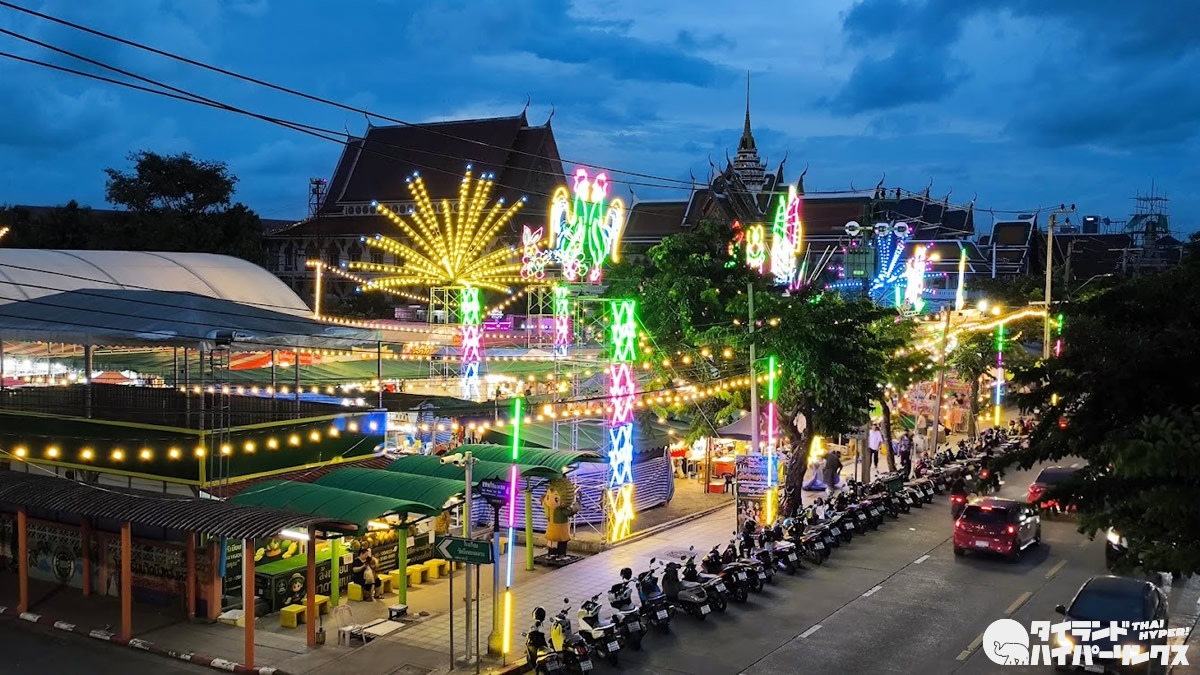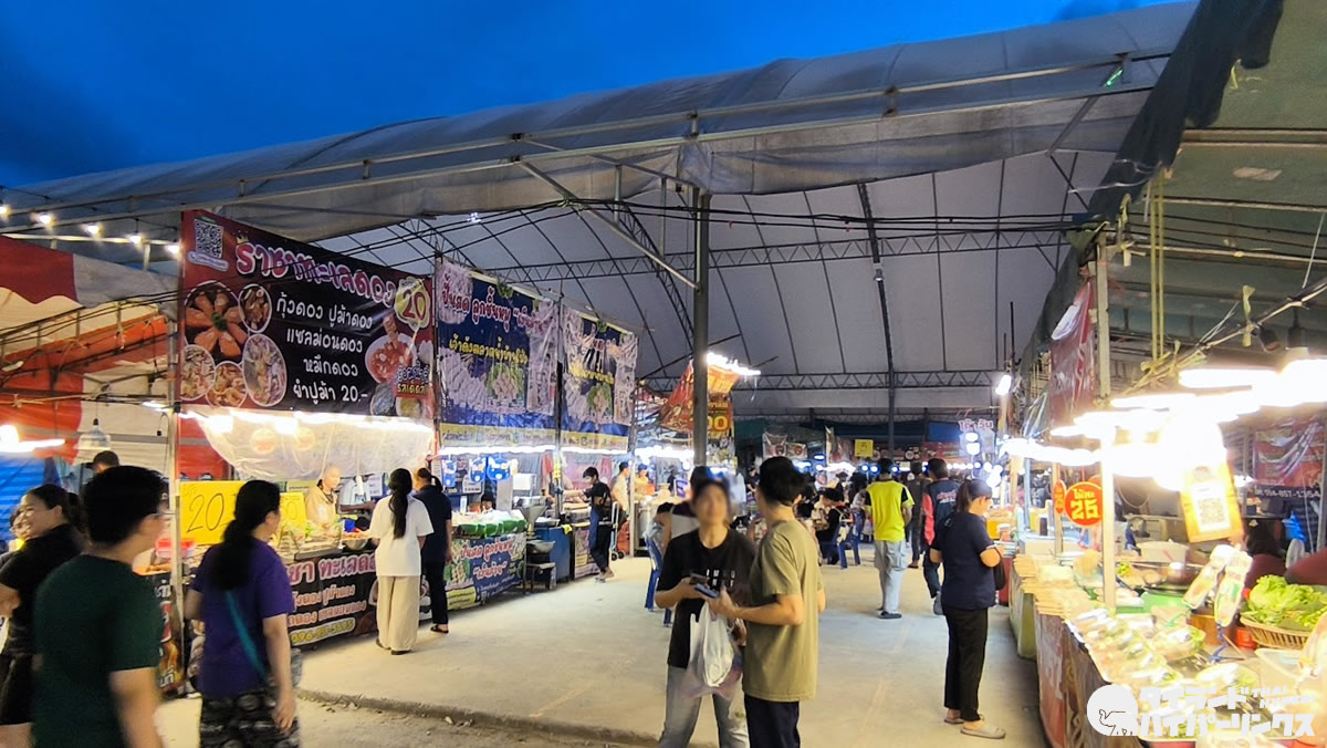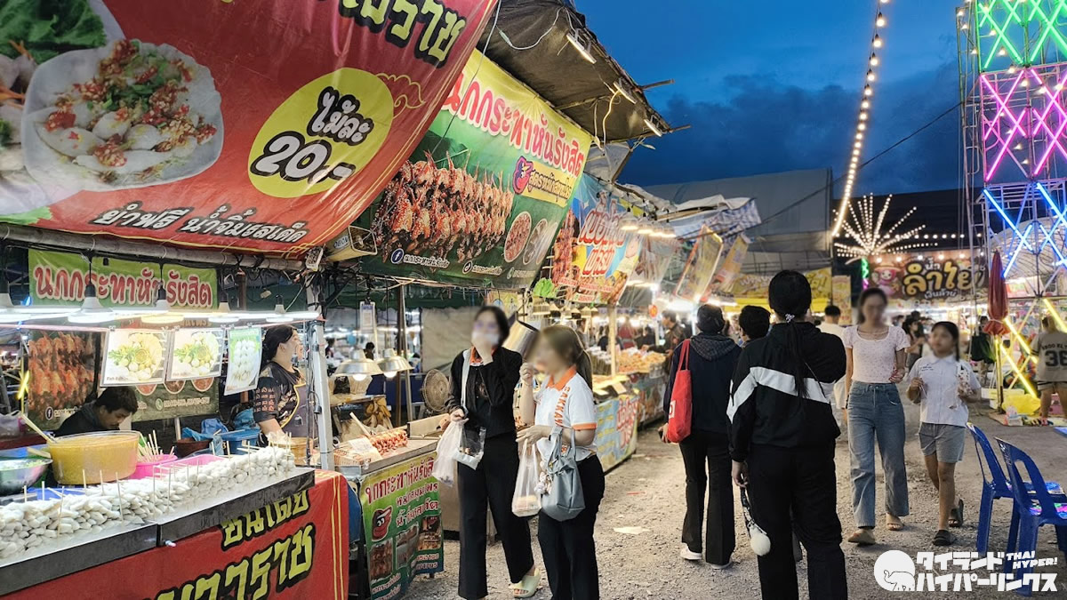 ワット・ブントーンラーン隣の広場にはたくさんの屋台が設置され、洋服や雑貨、おいしい料理まで、とにかく種類が豊富。焼き物の香ばしい匂いや甘いお菓子の香りが夜風に混じって、歩いているだけでお腹が空いてきます。屋根付きの場所もあるので、突然の雨でもなんとかなるでしょう!