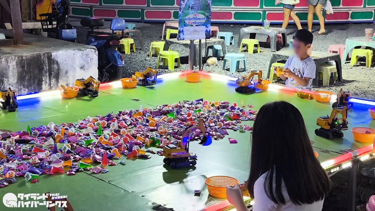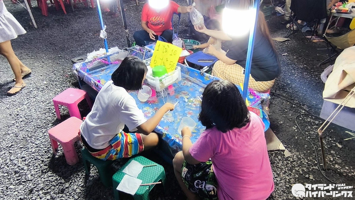 一角にはミニ遊園地が設置されていて、観覧車やトランポリン、線路をぐるぐる回るミニ電車まで登場。金魚すくいやお化け屋敷のような昔ながらのアトラクションも健在で、子どもたちの楽しそうな声が響いていました。