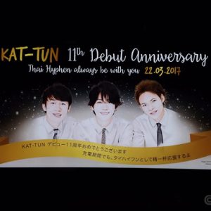 バンコクの地下鉄スクンビット駅構内で、日本のアイドルグループ・KAT-TUNを応援する広告パネルを見[...]