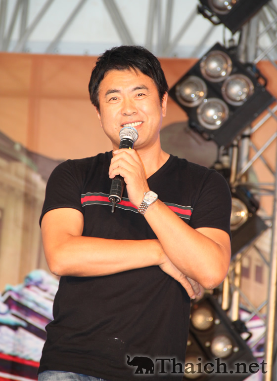 ステージにはサプライズゲストとして、歌手でタレントの田中義剛さんが登場。田中さんが以前タイを訪れた際に、タイの国民的スターであるバード・トンチャイさんの曲に出会ったことから、Berryz工房『cha cha SING』に誕生の繋がったことを明かしました。また田中さんとBerryz工房のプロデューサーであるつんく♂さんとの話の内容にも触れ、Berryz工房をタイでスターにすると明言。つづけて「これからはK-POPよりもT-POPの時代」と熱く語ると、タイ人ファン、日本人ファンで溢れた会場は大歓声に包まれました。