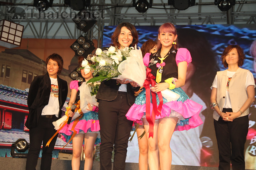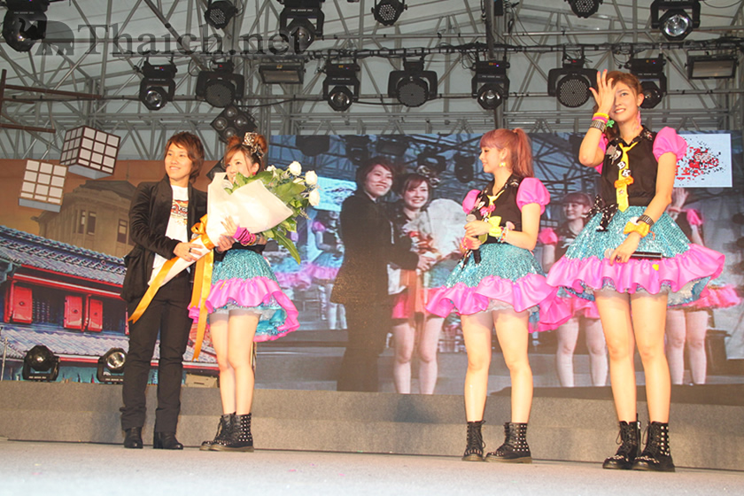 26日午後には日本からのスペシャルゲストBerryz工房のメンバー3人(清水佐紀さん、熊井友理奈さん、菅谷梨沙子さん)がステージに登場。タイでBerryz工房のカバーダンスをするチームとのご対面&競演、タイの有名歌手トンチャイ・メーキンタイさんの歌をカバーした新曲『cha cha SING』の披露、事務所の先輩であるタレントの田中義剛さんのサプライズ登場など盛りだくさんな内容でした。