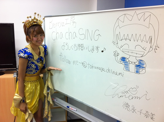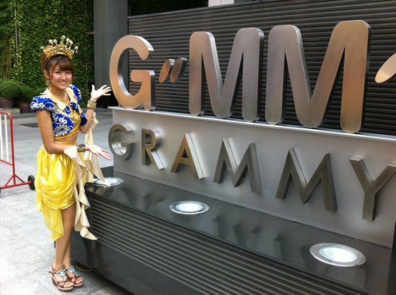2012年7月17日。Berryz工房のCDをタイで発売し、カバー曲のオリジナルを歌うバード・トンチャイさんが所属するGMMグラミー社を訪問する徳永千奈美さん。 (つづく)