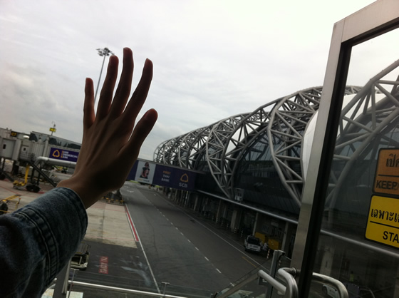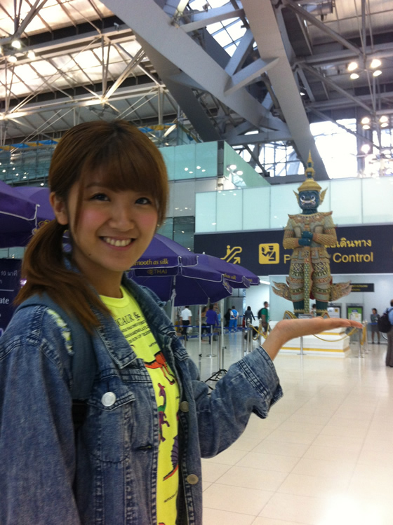 2012年7月19日。タイでのプロモーションを終え、スワンナプーム空港より日本へ向かう徳永千奈美さん。