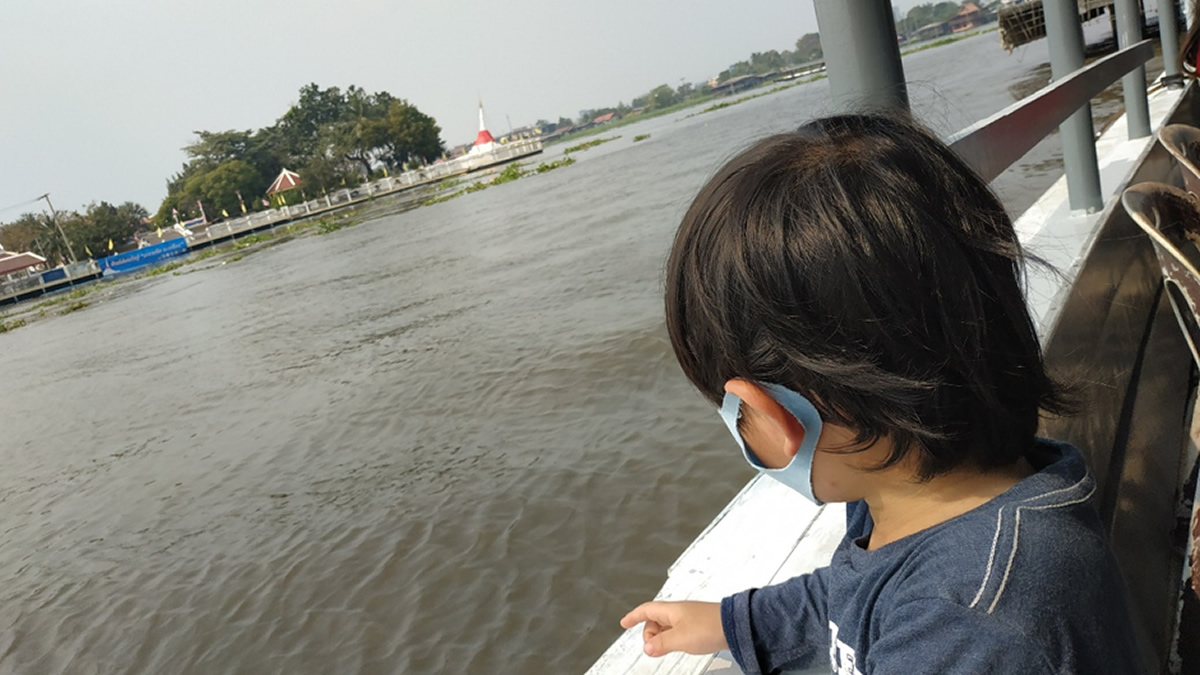 何はともあれ、ノンタブリーと言えばクレット島!実はタイ在住13年目にしながら今回、はじめて訪れてみました。渡し船で行くことになるために、バイクは渡し船発着所となるお寺に置いて向かいます。クレット島の起源である時代のアユタヤ王朝はここから少し行った上流にあり、そこにはかつて山田長政という立派なサムライがいた事を息子に話すには時期尚早…と、一人思いつつ…。