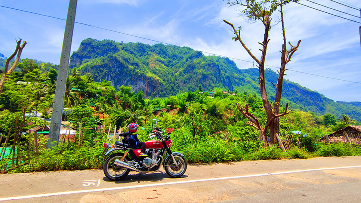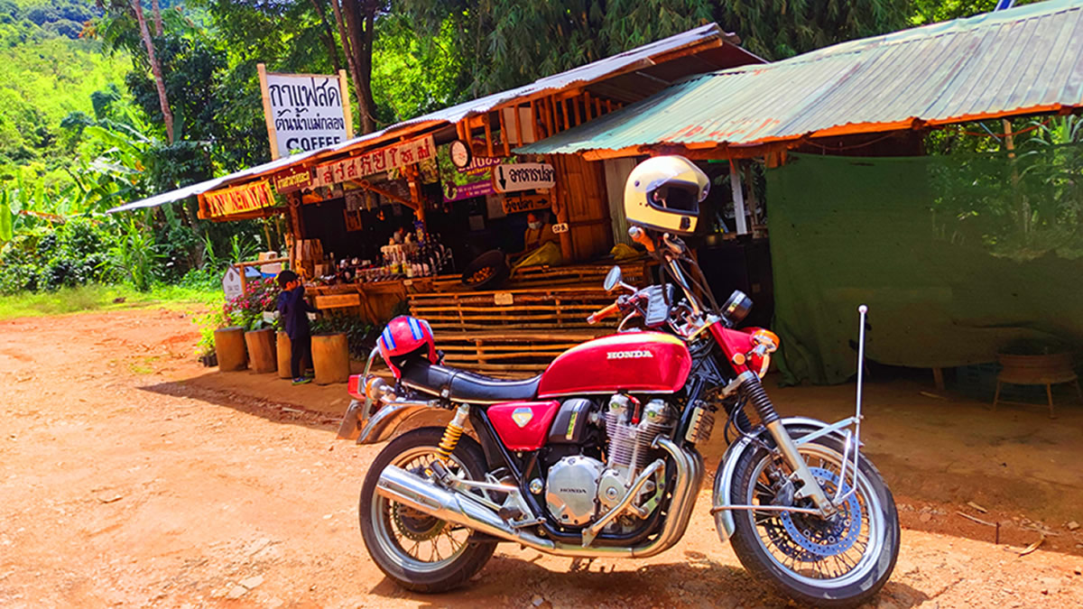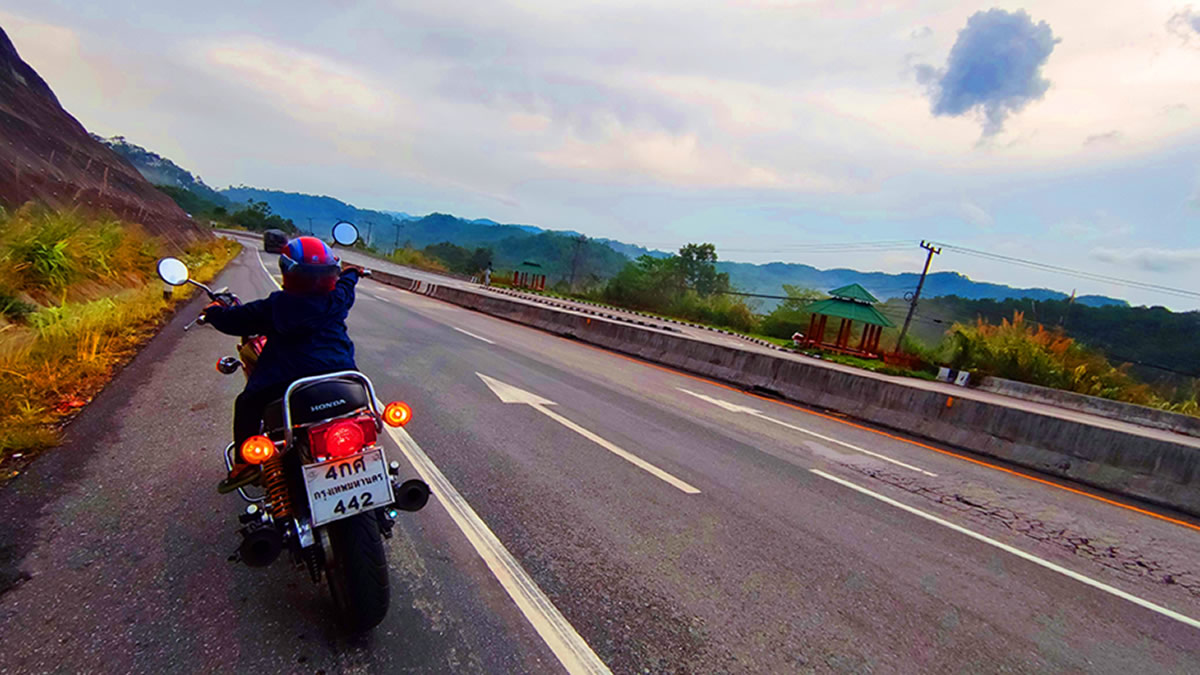 さて、バイク乗りには気になる道路状態ですが、概ね良好です。ターク県に行くまでの1号線には凸凹はないですし、特にナコーンサワンからは気持ちいいくらいの直線が続きます。メーソートへの山越えロードもよく整備されていますし、北部も問題ないですね。ただ、南部は凸凹や砂利がある箇所が少しありますが、ワインディングである為にスピードも出せないので特別な注意もなく快適に走れました。