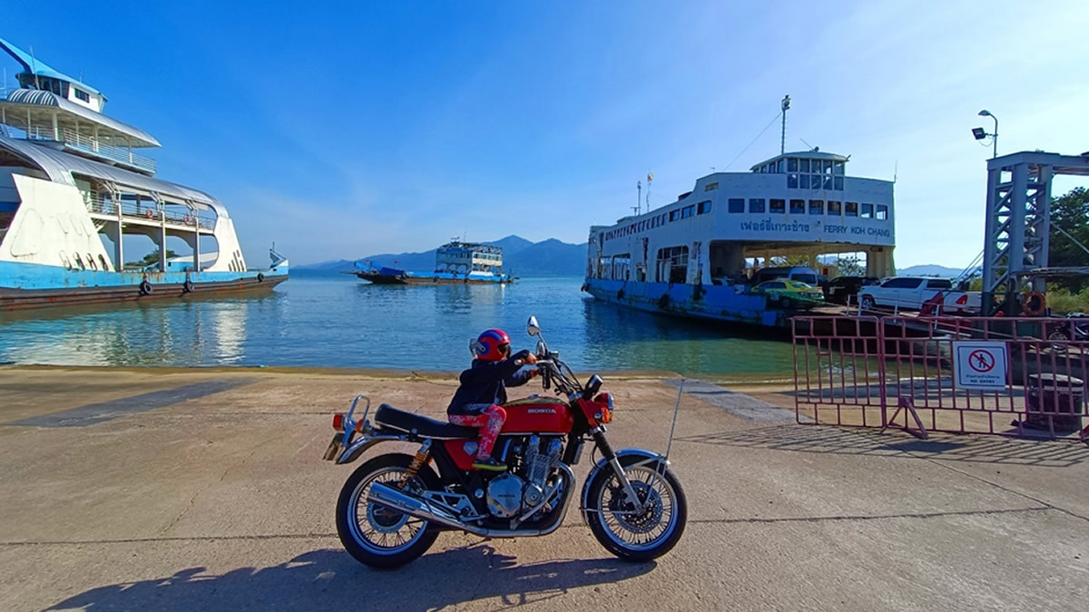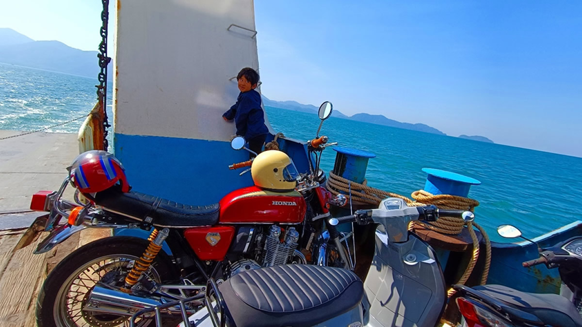 私はこれまでこのCBを駐車中に①ウィンカー(ステー)を折られ、②ナンバーを半壊され(追突)、③オイルキャップを壊され、④タンクに擦り傷など、この8年間で何度か被害を被っており、フェリーは荒々しい海の男が管理していそうで少し不安でしたが、思ったほどではなかったです。ただ、やはり狭い空間に駐車することになるので隙を見せてはなりません。