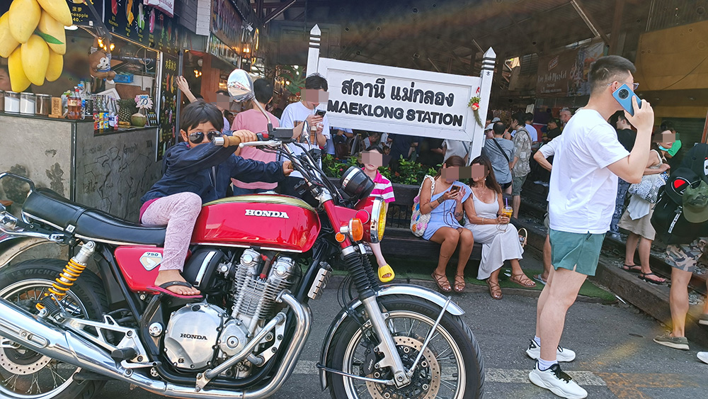 午後には、線路の上に開かれる市場、メークローン市場を訪れました。電車が通る直前に露店を畳み、列車が過ぎた後に元に戻る――その瞬間のスリルは息子も大興奮。「どうしてみんな、こんなところで売るの?」という相棒の素朴な疑問に、地元の文化や歴史を少しだけ語る場面もありました。このバイク旅は社会見学、修学旅行でもあります。