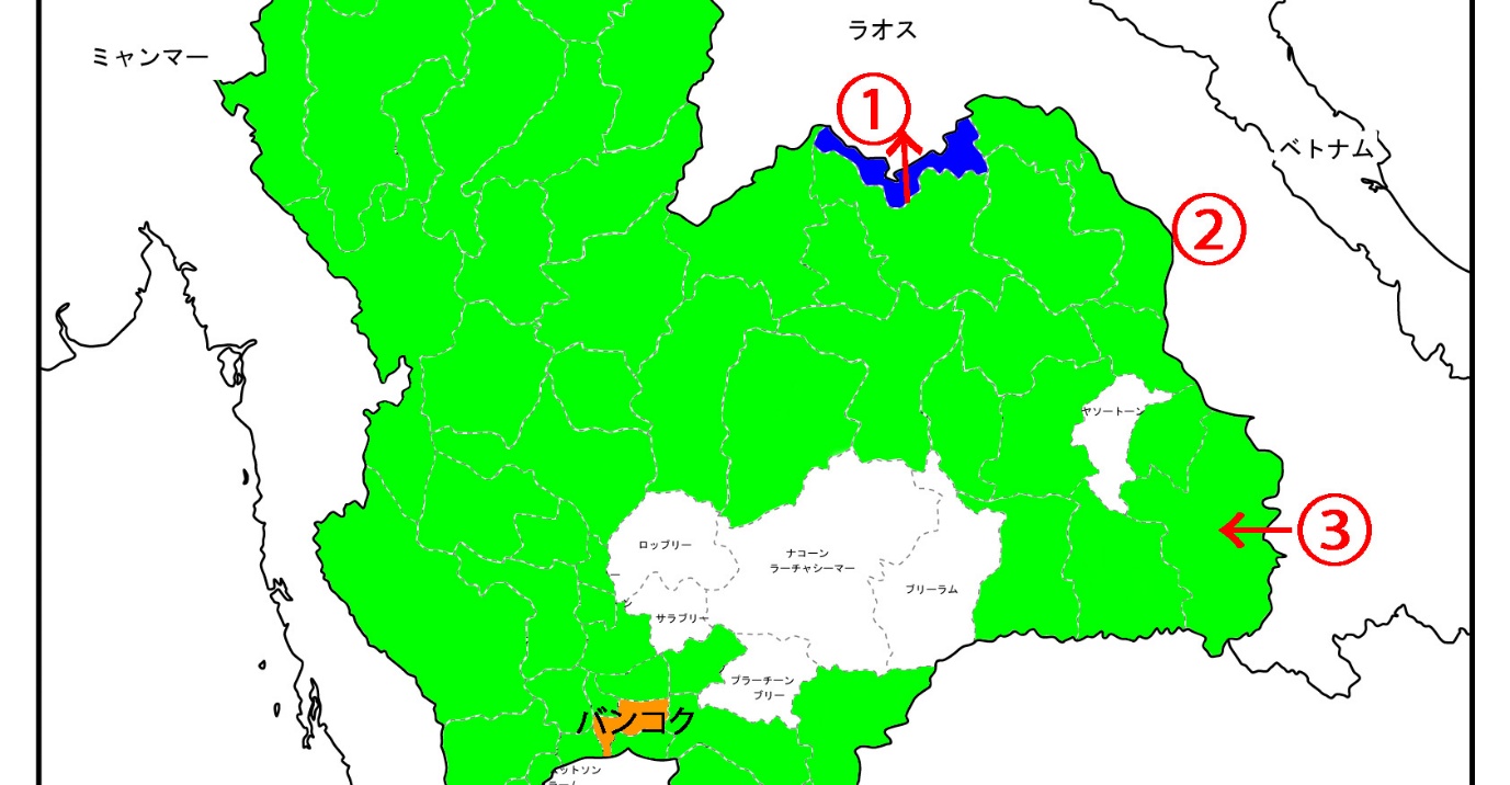 具体的には、まず一日目は①はラオスの首都・ヴィエンチャンに立ち寄り、二日目は②のターケークで一泊、三日目③のパークセーでは世界遺産「プラーサート・ワット・プー」を訪れました。③からタイ(ウボン)に戻り、その後はヤソートーンに向かう予定です。