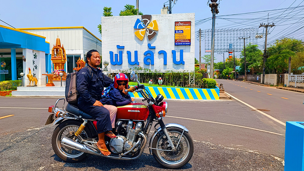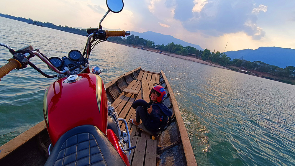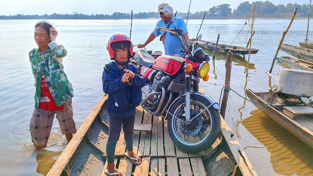 出た、Googleマップ名物「とんでもルート」!橋を渡るつもりで走っていたのに、案内されたのはまさかの渡し舟。普通なら即座にUターン案件ですが、今さら迂回していては世界遺産のオープン時間に間に合いません。渡し舟なら世界遺産はすぐそこ、確実に間に合う。しかしながら、私にとって唯一の問題は、その渡し舟を見るからにとんでもなく「沈みそう」な事だ。「バイクだけで260kgあるけど大丈夫?」という私の不安をよそに、「平気平気!早く乗せろ!」と煽るスタッフ。カスタム費込み100万バーツのCB1100が沈んでも、絶対にこの笑顔でバックレるに違いない。我が愛車を、この根拠なき「大丈夫」に賭けていいのか!?