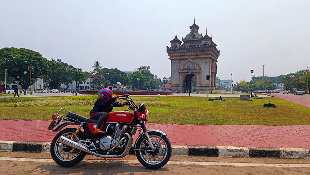 ラオスの首都でありながら、人口わずか80万人ほど。ここは驚くほど「何もない」穏やかさに包まれています。そんな心地よい「ゆるさ」が流れる街並みを、バイクで風を切って駆け抜けるのは最高に気持ちの良い体験でした。