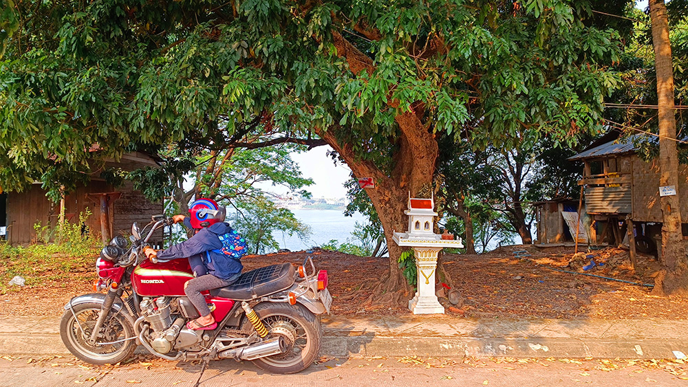正直、ラオスを走っている自覚が消えそうになるほどタイ。人も街並みも味付けも、タイのそれと寸分違わぬ空気感です。ただ、バイクを走らせていて一点だけ決定的な違和感がありました。それは、川沿いを南下しているのにメコン川が「右側」にあるということ。タイ全国をバイク旅する私でさえ、この景色だけは脳がバグを起こしそうになるほど新鮮で、不思議な体験でした。