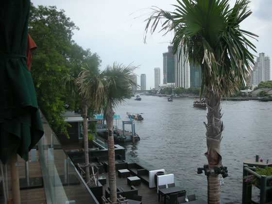 テーブルが水に浮いてるみたいでしょ?これは他のホテルではありえないロケーション!チャオプラヤ川マニアにはたまらない川の接近度ですぞ。大コーフンでーす!