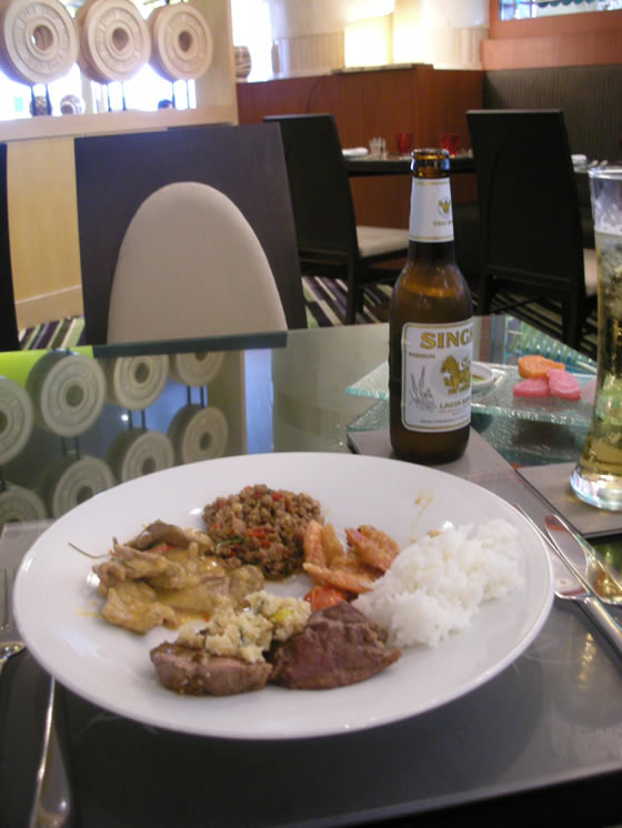 観光客向けかと思いきやタイ料理が本格的に辛くて美味しかったー。で、ローストビーフやポークのお肉類が充実していて、よっしぃみたいな肉大好き女子には嬉しい限り。