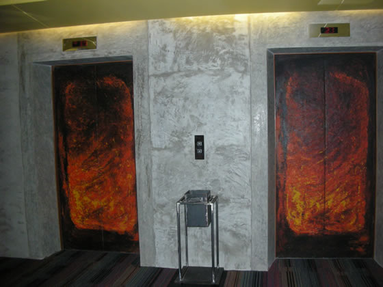 んでもって、そのエレベーターってのがすごい。がははは、なんだこりゃ?油絵のキャンバスみたいでしょ?