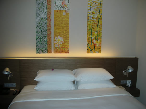 ベッド周りのパネルが爽やかさをプラス!こういうセンス、タイのホテルって抜群にいいと思います!