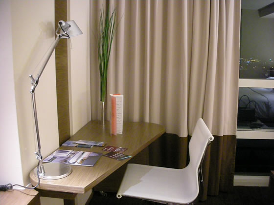 すっきりとまとまったデスク周り。古いホテルってデスクだけが大きくて、他を狭くしてしまっていることもあるけど、これはいいですね。お部屋自体が狭くはないけど、広くもないので、いい使い方をしていると思います。