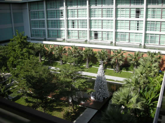 昨日感動した中庭はあれか!水に囲まれたちょっとした寛ぎスペースになっていて、あのエリアでボーっとするのも気持ちよさそう。12月、バンコクは涼しいからね。