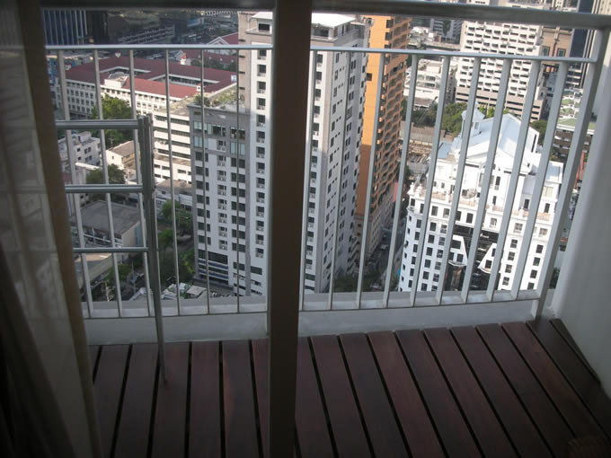 広くてなかなか良いバルコニーです。備え付けのいすやテーブルはありませんが、室内にあるデスクのいすを持って出て、読書しながらバンコクの風を感じるのも最高ですぞ!