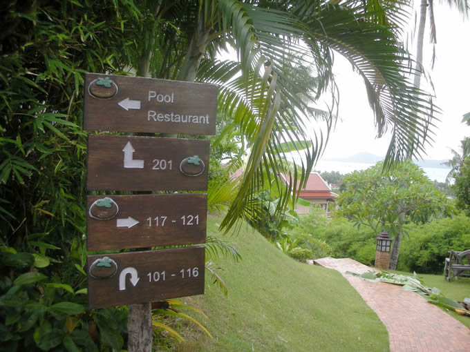 部屋の号数や施設ごとに迷わぬようこんなにかわいい看板も。ここにもマンゴスチンがー!