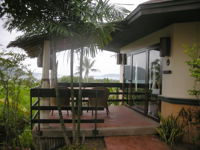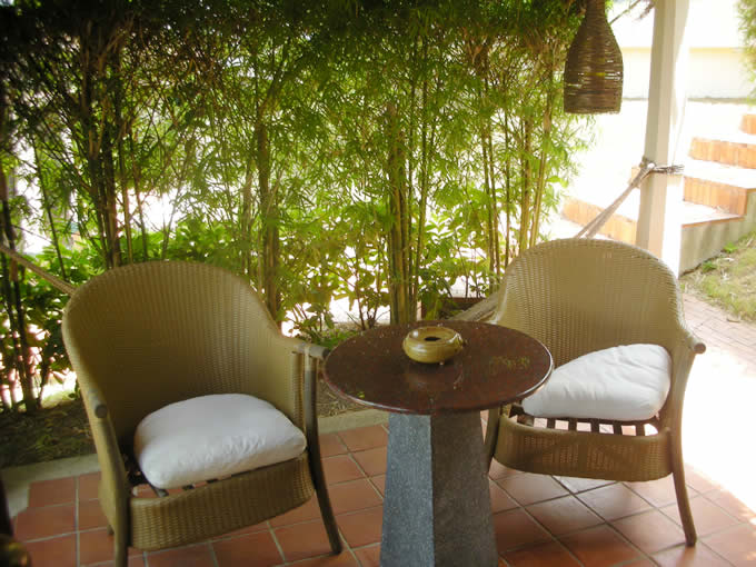 わー!テラスから海が見えるじゃないですか!一番安い部屋にしたんだけど、これはうれしい。テラスには椅子二つとハンモック。こりゃすばらしい。ここで朝のコーヒーを飲んだらまたいい気分なんでしょうなあ。