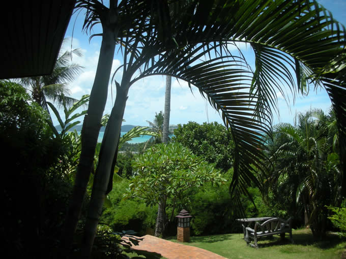 エステを受けて、体中がぐんにゃりほぐれたら、庭を散策。いやほんと、緑溢れる庭園、高台に作られたこのホテルは楽園でした。