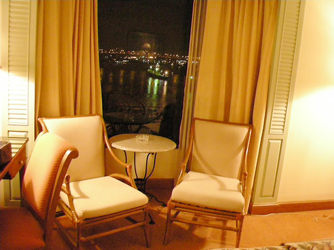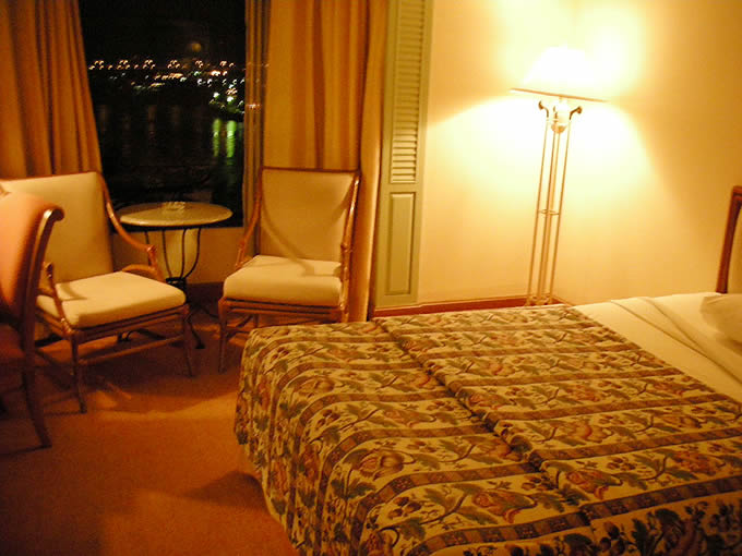 お部屋も広くて、申し分なし。モンティエンリバーサイドはラマ3世通り。対岸のもっとペニンシュラ寄りがアナンタラリバーサイドという不便な立地なので夜景はぜんぜんきれいじゃないんだけど、川が見えるだけでうれしい。