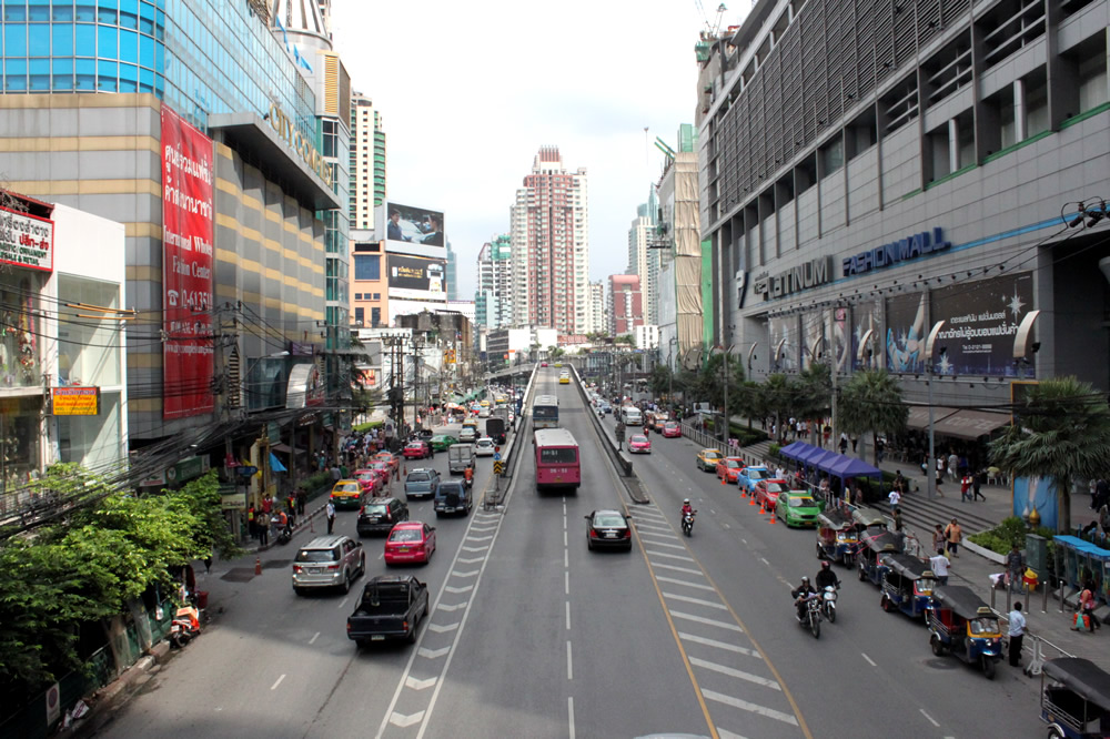 ペップリー通りよりプラトゥーナム交差点を超え、ニュー・ペプリー通りへ向かいます。左手にはプラトゥーナム市場、右手にはプラチナムファッションモール。 2010年10月現在プラチナムファッションモールの隣ではノボテルが建設中です。