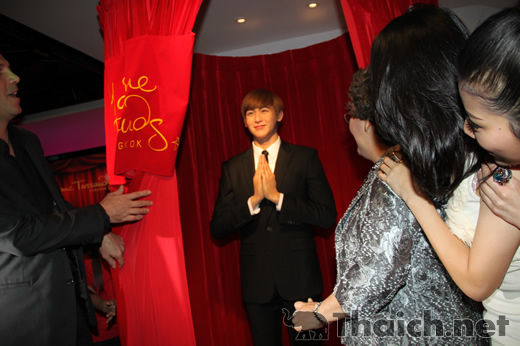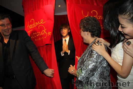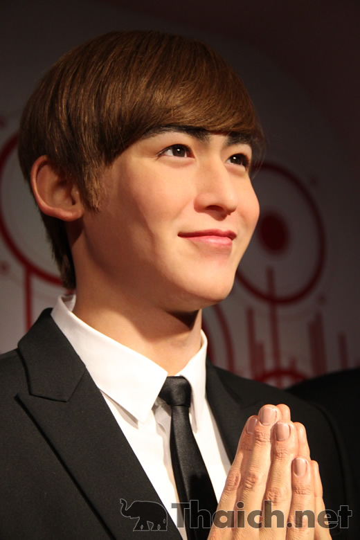 マダムタッソー・バンコクでの、韓国の人気アイドルグループ2PMのタイ人メンバー・ニックン(タイではニチャクン)蝋人形除幕式の様子です。