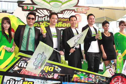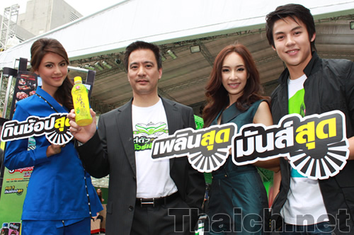 日本食レストラン、緑茶飲料大手の”OISHI”による新しいプロモーション「ไปแต่ตัว ทัวร์เลือกได้ (パイ テー トゥア トゥアー ルアク ダイ)」の記者会見の模様です。