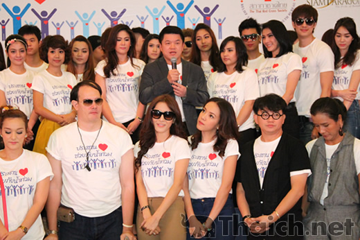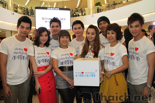 大手レコード会社RSプロモーションによる2011年大洪水救済支援イベント「RSプラサーンジャイ・チュアイパイ・ナムトゥアム(RS ประสานใจ ช่วยภัยน้ำท่วม)」 の様子です。