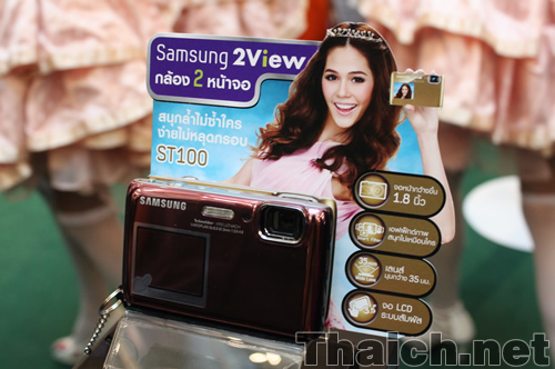 デジタルカメラの前面、背面双方に液晶モニターの付いたサムスンのデジタルカメラ「SAMSUNG 2View」の新機種発表会見です。