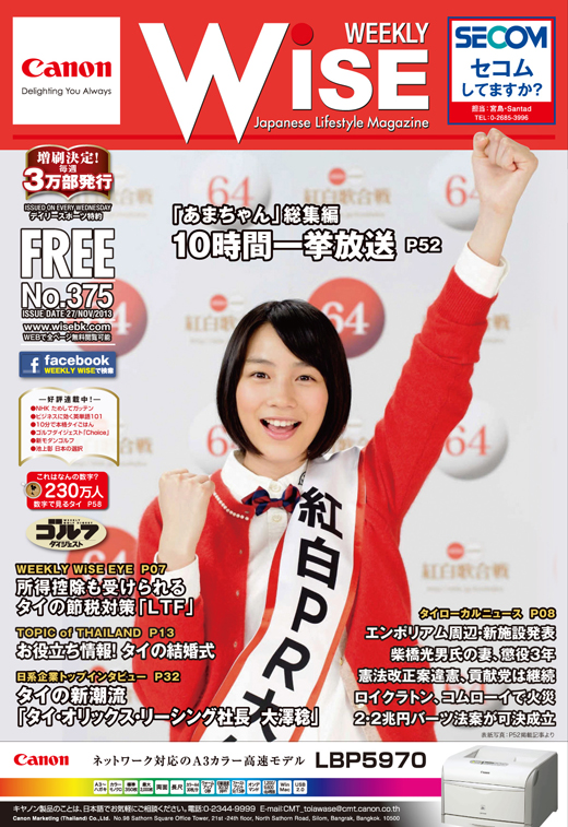 タイのローカル&ビジネスニュースから日本のスポーツ、芸能などタイと日本の最新情報がわかる記事のほか、レストランやスパ、不動産、リクルート、習い事といった暮らしの情報、さらにNHKの番組表やクラシファイド欄など、在タイ日本人に役立つ内容が満載。最近ではコラムや特集など独自の記事も人気を博している。