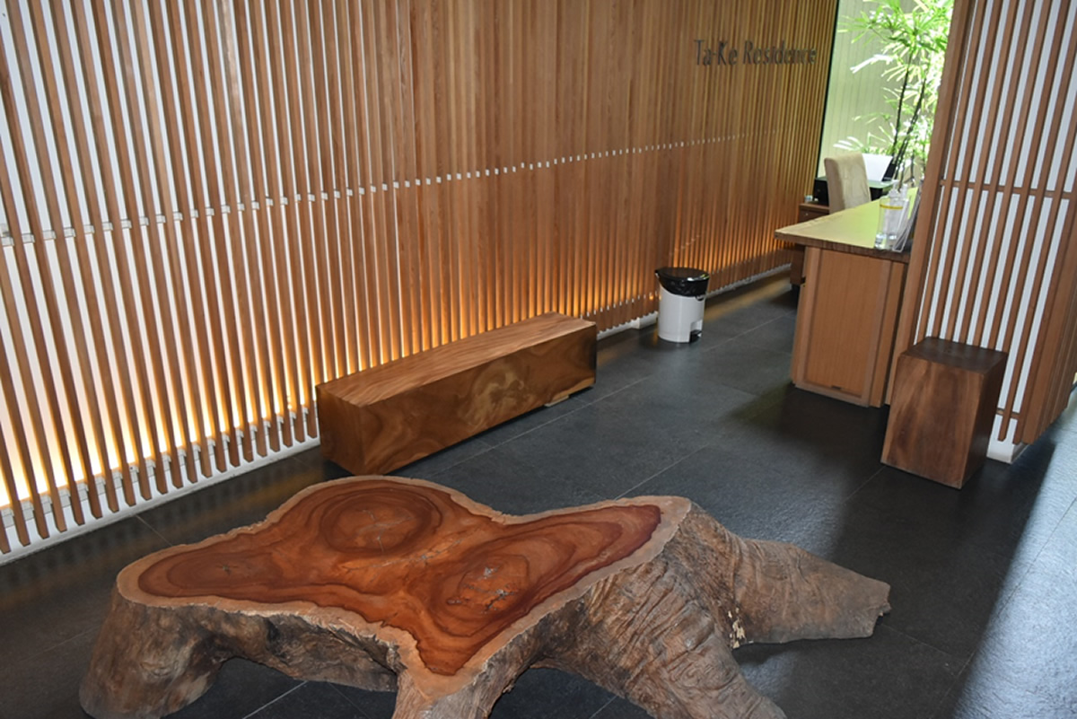 全てのお部屋に禅スタイルの情緒ある庭園をご用意。木の温もりあふれる純和風と洗練されたデザインの融合。温泉宿を彷彿とさせるくつろぎ空間をご堪能いただけます…こちらバンコクの物件の謳い文句である。「Ta-Ke Residence」2013築の8階建て、全13部屋のサービスアパートメント。こちらの2部屋のみの空室情報が届く、早速お部屋を見せてもらいに訪れた。