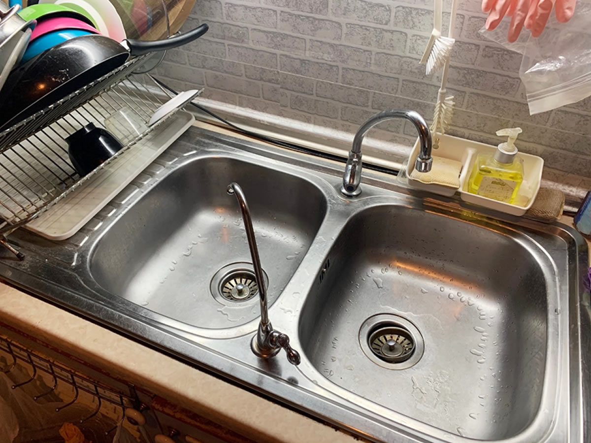 キッチンの好まれる形状も変わって来ていて、カウンターキッチンからアイランドキッチンに人気が変化していますね。シンクは残念ながら、特に新しいコンドミニアムなんかはとにかく小さい。因みに我が家のは2つ口、片方で水に付けたり洗剤で洗ったり、もう片方で洗い流すなど何かと便利。因みにタイの水道水は飲むのがNG。写真手前の蛇口が浄水器になっていて、炊飯や野菜を洗ったり、勿論飲料水としても使用、とても重宝しています。こちらはRO浄水器(工場の金属部品の洗浄などに使う純水にする浄水法)、レンタルにて3ヵ月に1回のメンテナンス(フィルター交換)込みで月900baht。