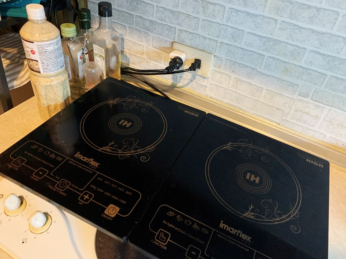 2007年以降の物件からガスコンロの設置がNGとなりました。強火で鍋が振れないというバンコク事情。初期設置費用が抑えられる電熱線のコンロを用意するオーナーさんが多く感じますね。ガスが使えるといってもプロパンガスとなります。一般的に10キロタンクで1ヶ月~1ヶ月半くらいもって、700baht~1,000baht程の金額設定。交換するごとに料金をお支払いします。因みに我が家では熱しにくくて冷めにくい…尚且つ温度調節が難しい電熱線コンロの上にホームセンターで買って来たIHヒーターを2台ドンとかましています。フライパンも電熱線用やIH用などに分かれていますので、購入される際は確認が必要となります。