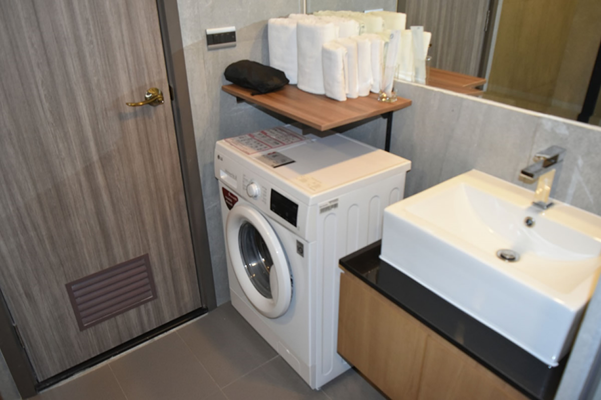 脱衣所には月額500バーツにて洗濯機が設置出来ます。
