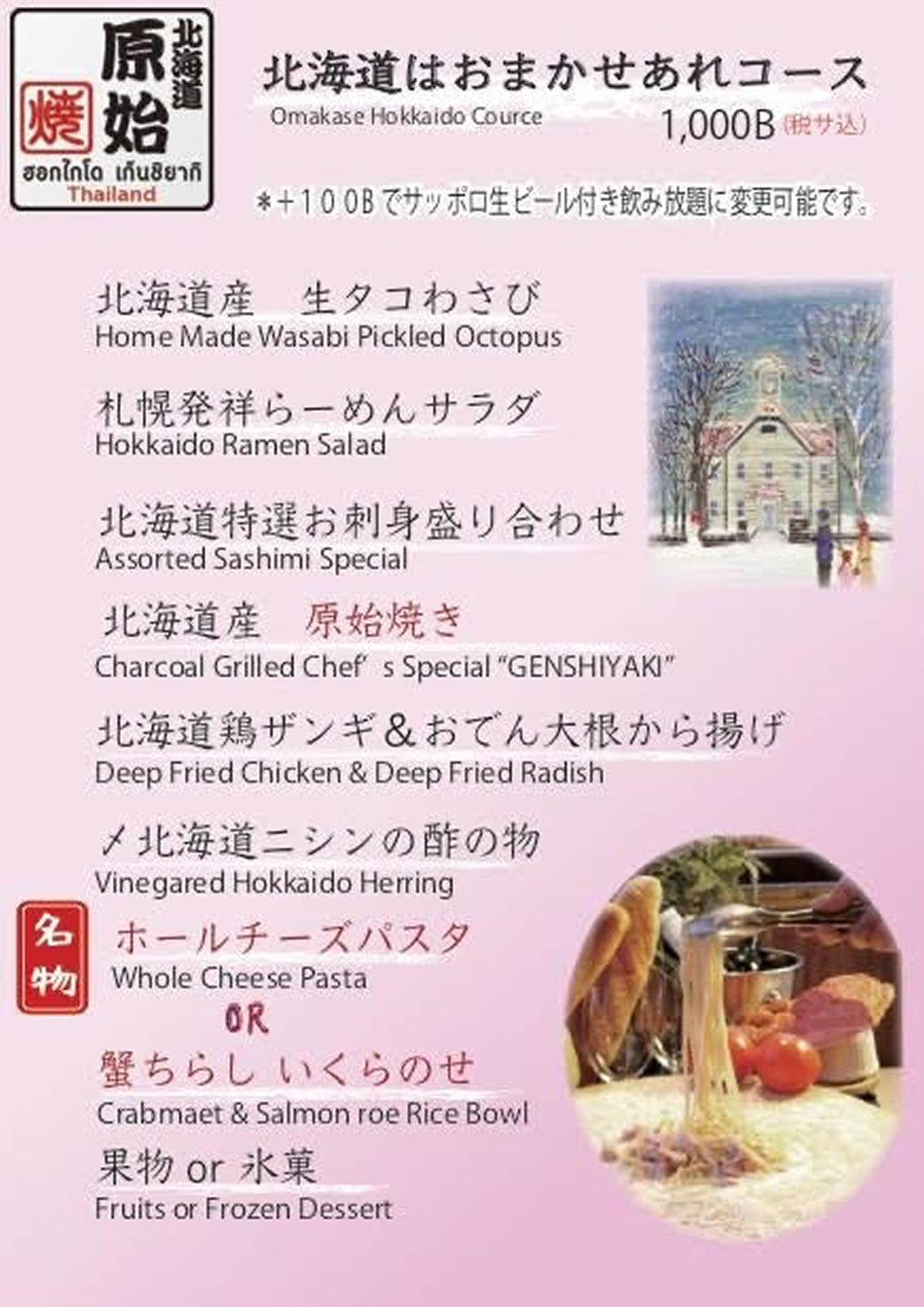7月よりさらにパワーアップした、「北海道はおまかせあれコース」は込み込み1000B