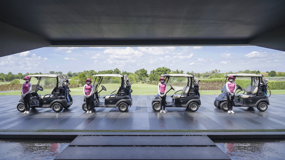 採取後、クラブハウス地下の駐車場へ移動し結果が出るまで待機します。結果が出て陰性であればキャディさんがカートで迎えに来てくれるので、カートにバッグを積んでクラブハウスへ。大体10分弱で完了とのとこと。