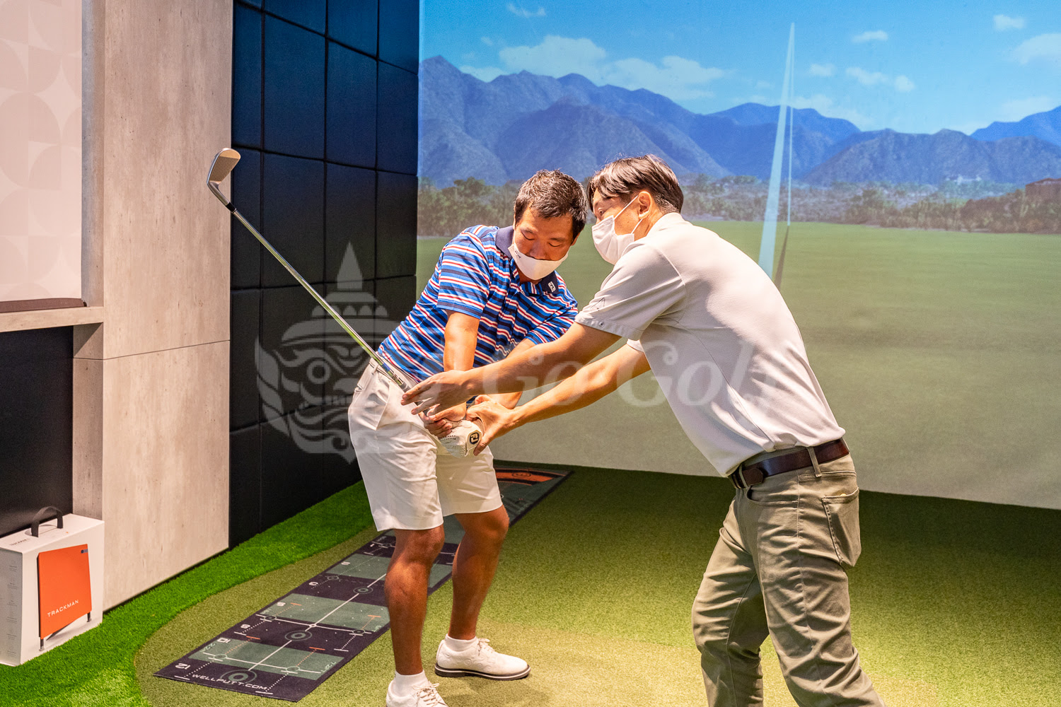 今回はこちらに在籍している日本人プロコーチ、久野プロの体験レッスンに弊社のエース、日本語ペラペラのアンちゃんと一緒に体験させていただきました。