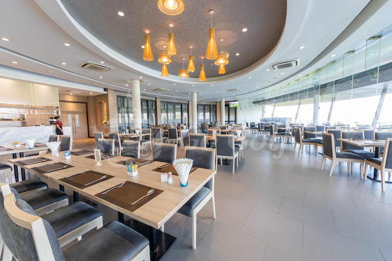 プレー前にはコースが見えるテラスでコーヒーか人気の和定食を。ここから見える9番と18番はハードなホールです。練習場がないのが本当に残念です。