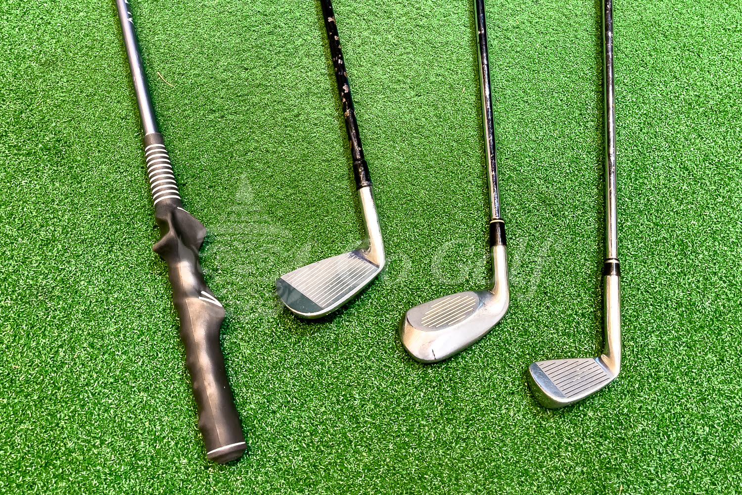 凄かったのはこれらの練習器具。10人に10通りの言葉通り、手でこねてしまう人用に異常に重いクラブ、ミート率が低い人用にミニヘッドクラブ、ダウンブローに打てない人用にダウンブローで打たないと球が上がらないクラブ、などなど、様々なクラブが用意されています。初めて見るクラブに驚き。